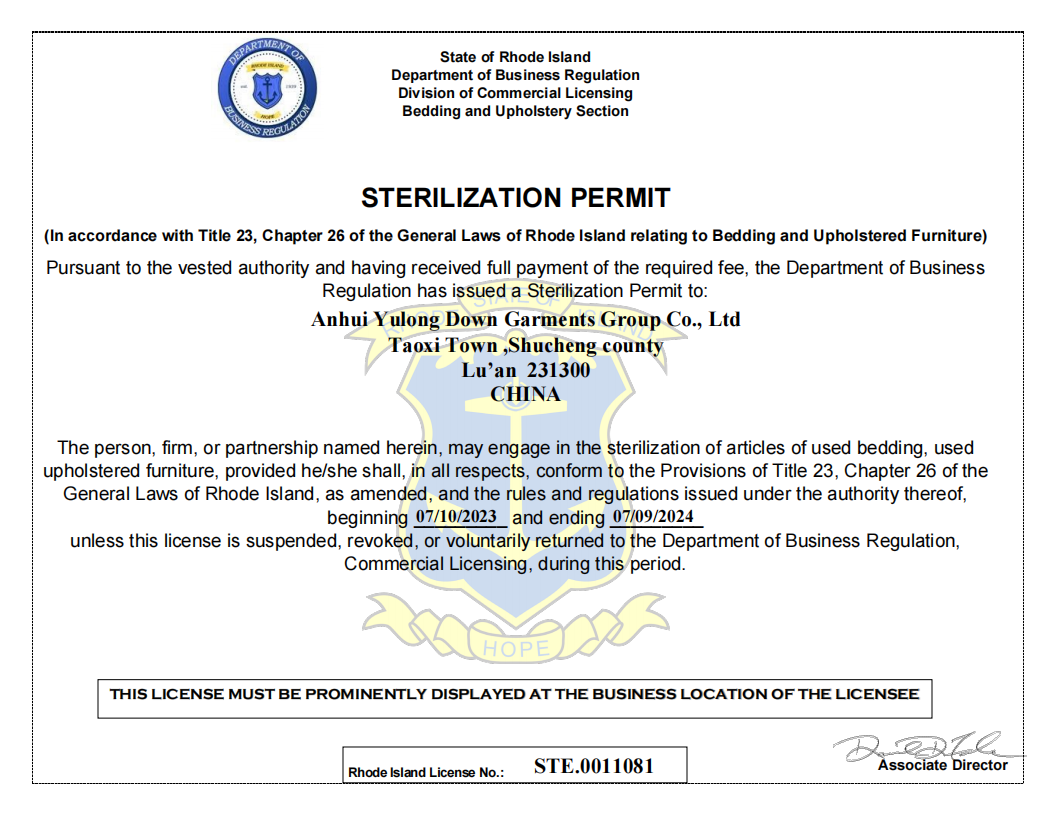 RI灭菌许可证