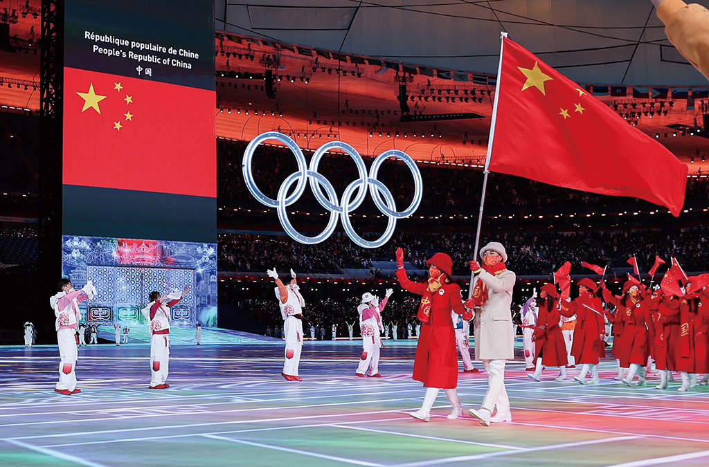 北京冬奥会开幕式上演了一场“世界羽绒服大会”。图为中国体育代表团入场。 曹 灿 摄